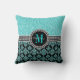 Coussin Girl Aqua Blue Parties scintillant Monogramme Nom