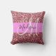 La parties scintillant rose rose rose rose rose rouge et rose vermillon brille le nom de monogramme blanc et l'oreiller de lancement initial. Votre nom personnalisé et votre monogramme sont écrits dans un élégant script écrit à la main avec un arrière - plan rose. Un cadeau d'anniversaire ou de Noël parfait !
