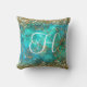La police de ce monogramme est très décorative et unique pour certaines lettres, mais vous pourrez déplacer le texte si nécessaire pour votre lettre initiale. Faux parties scintillant dorée brillante avec étincelles contre une image d'art graphique en glamour turquoise et turquoise. Tous les éléments brillants et brillants de ce design girly moderne sont des graphismes numériques qui s'impriment comme une photo sur votre oreiller de projecteur personnalisé. Golden turquoise, aqua et bleu turquoise glam cadeau.
