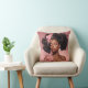 Accentuez votre espace grâce à cet oreiller jeté, agrémenté d'un portrait de femme noire aux boucles verdoyantes et aux ornements floraux roses.