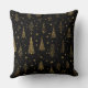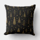 Elegant gold botanical pattern throw pillow blending autumn warmth and Christmas charm. Features hand-drawn leaves, trees, and foliage in rich golden tones on a deep black background. Perfect for holiday-inspired designs, seasonal decor, and nature lovers who adore a luxurious festive aesthetic.