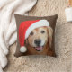 Ajoutez une petite acclamation de Noël de golden retriever à vos vacances cette année ! Ce coussin comporte une photographie d'un chien de sourire de golden retriever utilisant un casquette rouge de Père Noël.