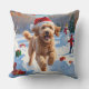 Coussin Goldendoodle Courir en neige avec Casquette de Noë