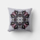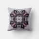Mandala gothique monogrammed coussin avec un bel art kaléidoscopique abstrait créé à partir d'un dessin à l'encre de feuilles et de bugs aux couleurs noir, rose et violet. Cette belle oeuvre personnalisée est dessinée dans un style qui ressemble à l'art gothique.