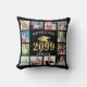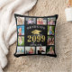 Créez un coussin photo commémoratif de remise de diplômes avec 12 photos carrés et personnalisées avec le nom du diplômé avec la typographie or année modifiable et la conception de bouchon de graduation feuille or métallique sur un arrière - plan noir modifiable vous pouvez changer à une couleur d'école, couleur préférée ou choisir un arrière - plan graphique stylisé. ASSISTANCE : Pour obtenir de l'aide sur la modification/personnalisation de la conception ou le transfert de la conception à un autre produit, contactez le concepteur AVANT DE COMMANDER via Zazzle Conversation ou makeitaboutyoustore@gmail.com.