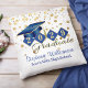 Coussin Graduation personnalisée Blue & Gold Confetti