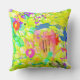 Ce coussin a des nuances d'été éclatantes : jaune, vert citron, rose, orange, turquoise, aqua, noir, corail, bleu et plus. J'ai utilisé des couches de couleurs et de textures à divers degrés d'opacité pour donner cette profondeur et le plus important...FUN!