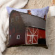 Vous aimerez ce grand coussin avec l'art magnifique d'une grange rouge de pays avec l'équilibre blanc et des portes à deux battants encadrées par de beaux arbres. Style de peinture à l'huile de la photographie originale de l'artiste. Herbe verte, grange rouge, ciel bleu dans cette image idyllique. L'image est de deux côtés. Les coussins ont une tirette pour le nettoyage facile, aussi.