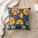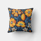 Coussin Gras Retro Floral Illustration en orange et bleu