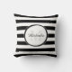 Un carré audacieux à rayures de rugby noir et blanc lance l'oreiller. Personnalisez ce motif designer en ajoutant votre nom et votre initiale monogrammée. Ce monogramme de hanche fait partie de la collection de couleurs d'été Black Stripes.