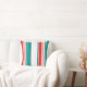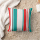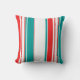Les deux côtés de ce coussin ont un motif audacieux de rayures turquoises, rouges et blanches de tailles différentes. Moderne, coloré, et il ajoutera certainement une grande couleur à toutes les chambres.