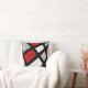 Coussin imprimé avec peinture géométrique acrylique originale en rouge, gris, noir et blanc.