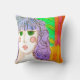 Mon tableau abstrait coloré d'une dame aux yeux verts fait de cet oreiller décoratif une oeuvre d'art funky !