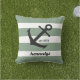 Les bandes nautiques lancent l'oreiller avec une empreinte d'ancre. Personnalisez avec le nom de famille et l'année établie.