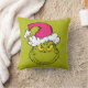 This fantastic, bold illustration is a close-up portrait of the Grinch in full mischievous mode! He has his signature sly grin and bright yellow eyes, but his look is updated with a large, fluffy Santa hat in a fun, unexpected pink/fuchsia color instead of the traditional red. This graphic is perfect for anyone who loves the holidays but embraces a non-traditional, delightfully grumpy, and colorful style!