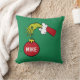 This is a fun, decorative square throw pillow perfect for holiday seating. The pillow features a single, large graphic of the Grinch's fuzzy green hand emerging from a red sleeve with a white cuff. The hand is reaching for or holding a red Christmas ornament that is prominently personalized with the name in white block letters. The entire design is set against a solid, festive Christmas green background, making it a great accent piece for couches, chairs, or beds during the holiday season.
