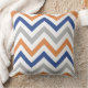 Coussin Gris bleu et blanc oranges de motif de zigzag