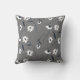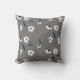 Motif floral blanc moderne sur coussin gris.
