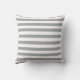 Motif rayé gris et blanc personnalisé avec coussin carré d'ancre nautique rose corail. Le design comprend un motif à rayures grises et blanches et une ancre marine rose corail avec votre nom personnalisé.