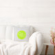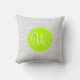 Ce coussin a un motif gris de chevron à l'arrière-plan avec un cercle vert et un monogramme de trois lettres au centre.