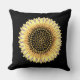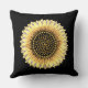 Gros tournesol, coeurs et pois dorés sur l'oreiller à lancer arrière - plan noir. Elégants Coussins décoratifs. Belle Décor Maison.