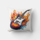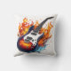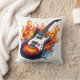 Coussin Guitare vibrante entourée de flammes au crépuscule
