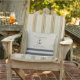 Créez un décor nautique personnalisé et design dans le beige et le bleu de la baleine accessible qui comprend du texte rayé motif, ancre et modèle pour votre nom de famille, lieu, année ou autre.