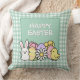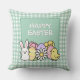 Coussin Happy Easter Bunny Chick Eggs Green Gingham