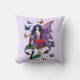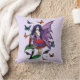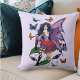Fée mignonne tout en violet et rouge avec à damiers bas assis sur un champignon aux papillons tout autour.