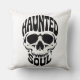Bold black-and-white skull with curved 'Haunted'/'Soul' typography; high-contrast gothic motif for Halloween, rock, and streetwear fans seeking fearless edge.