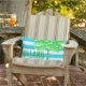 Coussin Heure de l'île aux palmiers à rayures turquoise et