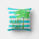 Coussin Heure de l'île aux palmiers à rayures turquoise et