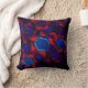 Coussin hexagone bleu mélangé avec des courbes rouges qui