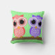 Coussins mignons de Mojo d'Américain de hiboux, T-shirts, sweatshirts, chemises et cadeaux roses et pourpres de hibou pour des amants de hibou, des amants d'oiseau et des birders. Deux hiboux se reposant sur le membre d'arbre. Cadeaux uniques, colorés et frais de hibou pour des anniversaires, Noël ou toute occasion.