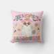 Joli, coloré, amusant Hippie Halloween lancer oreiller dispose d'un fantôme hippie avec casquette de sorcière rose, texte qui lit Hippie Halloween, et quelques fleurs et petites chauves-souris et crânes en lavande, melon, aqua, et rose!