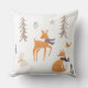Cet oreiller de lancer présente un joli thème boisé d'hiver avec un design d'art populaire scandinave. Divers animaux de la forêt sont représentés parmi les arbres dans une forêt d'hiver. Un petit renard est au fond avec un oiseau au-dessus. Un élevage de cerfs est placé au centre, et un petit lapin est à gauche. Berries et feuillage accentuent l'image.
