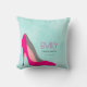 Un coussin personnalisé avec une chaussure en stiletto rose chaud. Placez-vous sur un arrière - plan d'aquarelle vert menthe. Chic et glamour. Personnalisez avec un nom, avec le mot Fashionista ci-dessous, qui peut également être personnalisé avec un surnom, titre, nom etc...