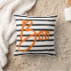 De caractéristiques décoratives de ce coussin de Halloween les rayures noires et blanches horizontales avec une orange "huent" écrit en manuscrit moderne placé sur le dessus.