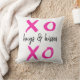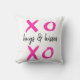 Coussin Hugs & baisers, xoxo, Saint-Valentin, rose