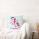 Un coussin avec un dicton drôle : Je fais tomber la magie. Conçu avec une licorne ailée blanche avec crinière rose, queue et sabots. La corne a des anneaux de couleur arc-en-ciel et ressemble à une sucrerie. Cette mignonne licorne s'élève sur ses pattes arrières. Coeur rose doux sur sa joue et de longs cils girly. Un arc-en-ciel coloré à côté du mot magie.