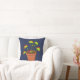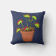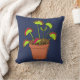 Cet oreiller de lancer a un style réaliste de l'illustration d'un plante Vénus Fly Trap dans un pot de fleurs à l'avant contre un arrière - plan bleu marine avec un motif de coordination de nepenthes, venus piège les plantes et les mouches à l'envers.