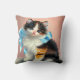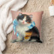 Coussin avec un chaton calico mignon. Le chaton porte un ruban bleu assis adorablement sur une table. Un cadeau parfait pour les amoureux de les chats et les amateurs d'art victorien !