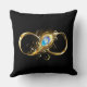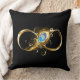 Or, symbole brillant de l'infini, décoré de bijoux plumes paon avec turquoise sur arrière - plan noir.