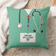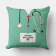 Oreiller d'infirmière personnalisé avec des tenues de bloc opératoire, un stéthoscope et un couteau suisse drôle. Modifiez le texte pour ajouter le nom et les titres professionnels.