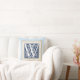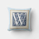 Une belle lettre céleste en relief décoratif illuminée de têtes de dragon gris sur un arrière - plan bleu foncé velouté. Ce coussin a une double bordure de motifs en pierre, la lumière avec un bord foncé sur un côté, qui est vénéré à l'arrière. Changez l'arrière - plan pour l'adapter à votre décor.