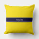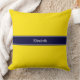 Coussin Jaune Uni, Ruban Bleu Marine Monogramme Nom