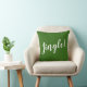 Un coussin vert de Noël lumineux et festif dit "Jingle !" sur le devant. Le dos a un motif de cloches en laiton. Beaucoup plus de cadeaux de vacances et de trésors dans ma boutique à www.zazzle.com/digiscrapthat