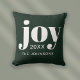 Joie de Noël Oreiller minimaliste moderne. Un élégant oreiller festif chic vert et blanc jeté. Personnalisez avec votre nom et votre année personnalisés. Un cadeau parfait pour vous-même, vos amis et votre famille.