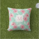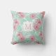 Coussin Joli monogramme tropical d'Hibiscus rose floral