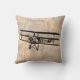 Un avion d'aviation à l'ancienne de style ancien lance l'oreiller avec un avion vintage illustré sur un journal d'âge classique ou un arrière - plan de papier journal.